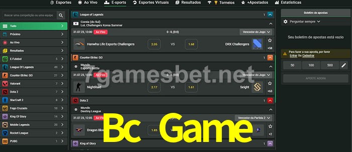 O Bc Game oferece uma grande seleção de opções de apostas em e-sports com probabilidades competitivas